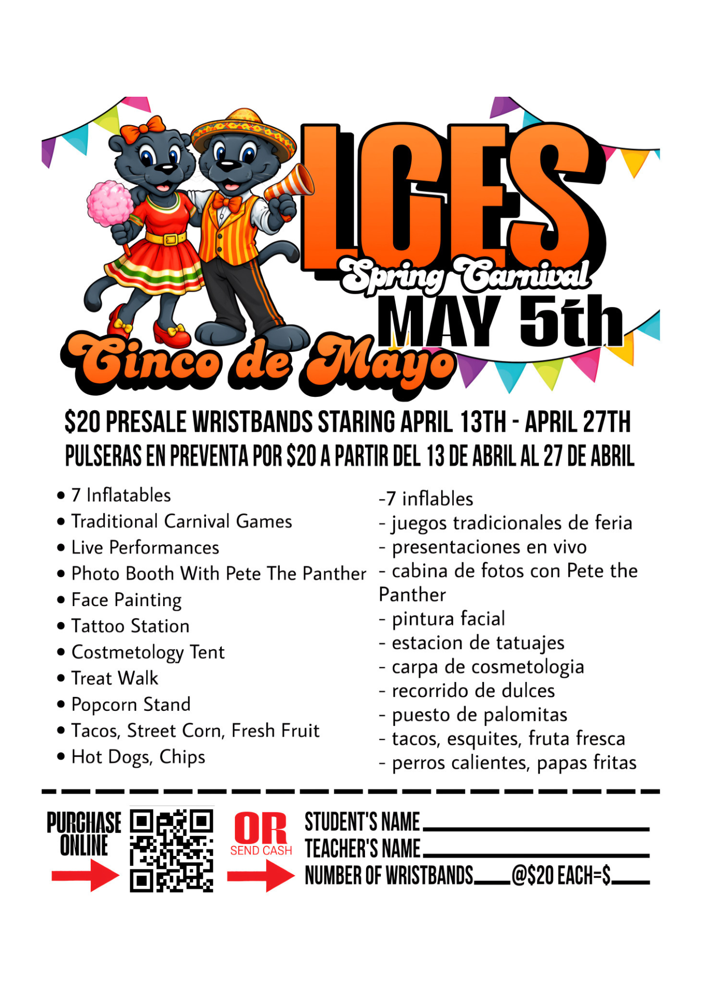 A wristband is required for students and children over 2. Parents get in free. WHEN PURCHASING ONLINE, PLEASE INCLUDE YOUR STUDENT'S NAME AND TEACHER IN THE PAYMENT MEMO.